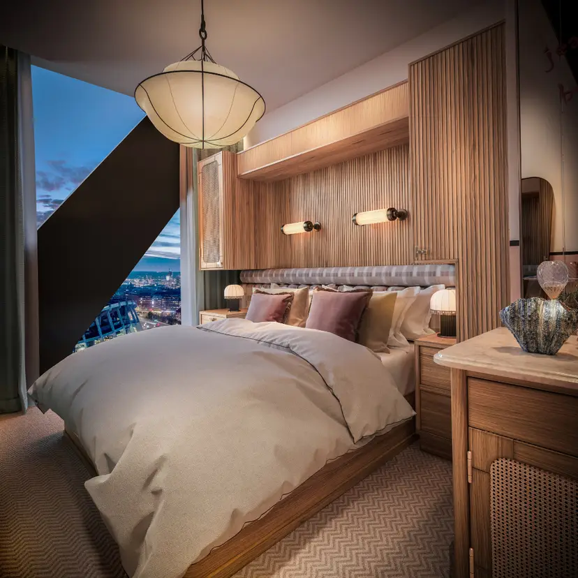 Tredje sängen är en mindre och enklare 80 cm extrabädd, placerad bredvid ordinarie dubbelsäng.